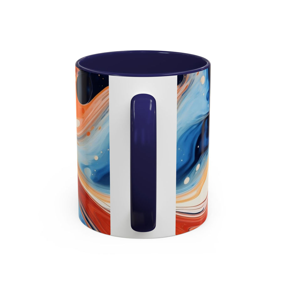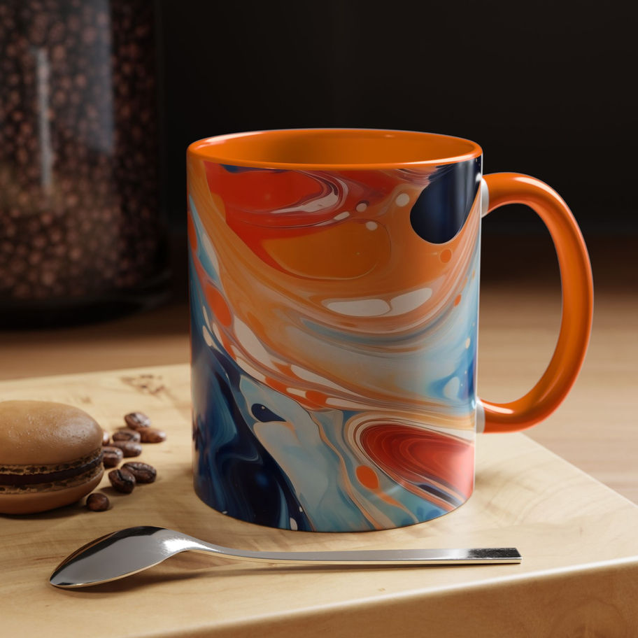 Abstract Fluid Art Mug (11oz) – Blue & Orange Marble Effect Coffee Cup