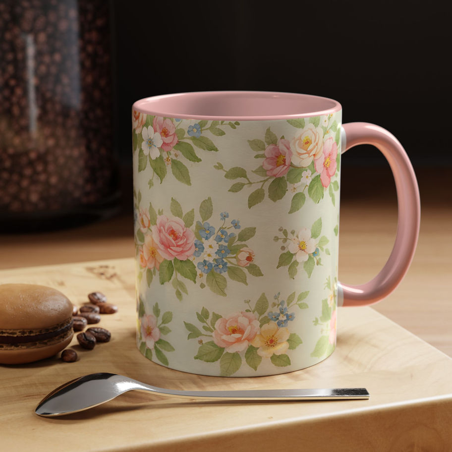Blush Meadow Floral Mug (11oz) – Soft Pastel Rose & Wildflower Coffee Cup