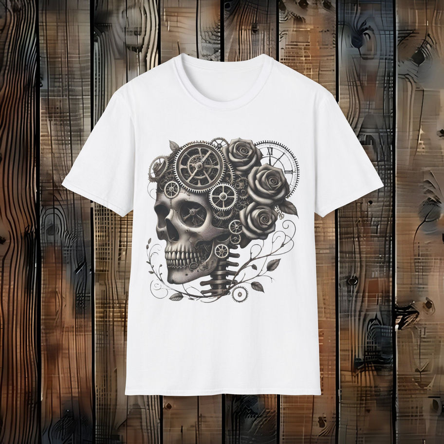 Clockwork Mortality" Steampunk Skull & Roses T-Shirt