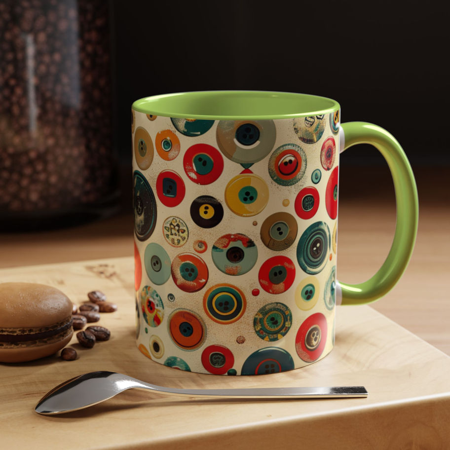 Colour Pop Button Collage Mug (11oz) – Retro Sewing Pattern Coffee Cup