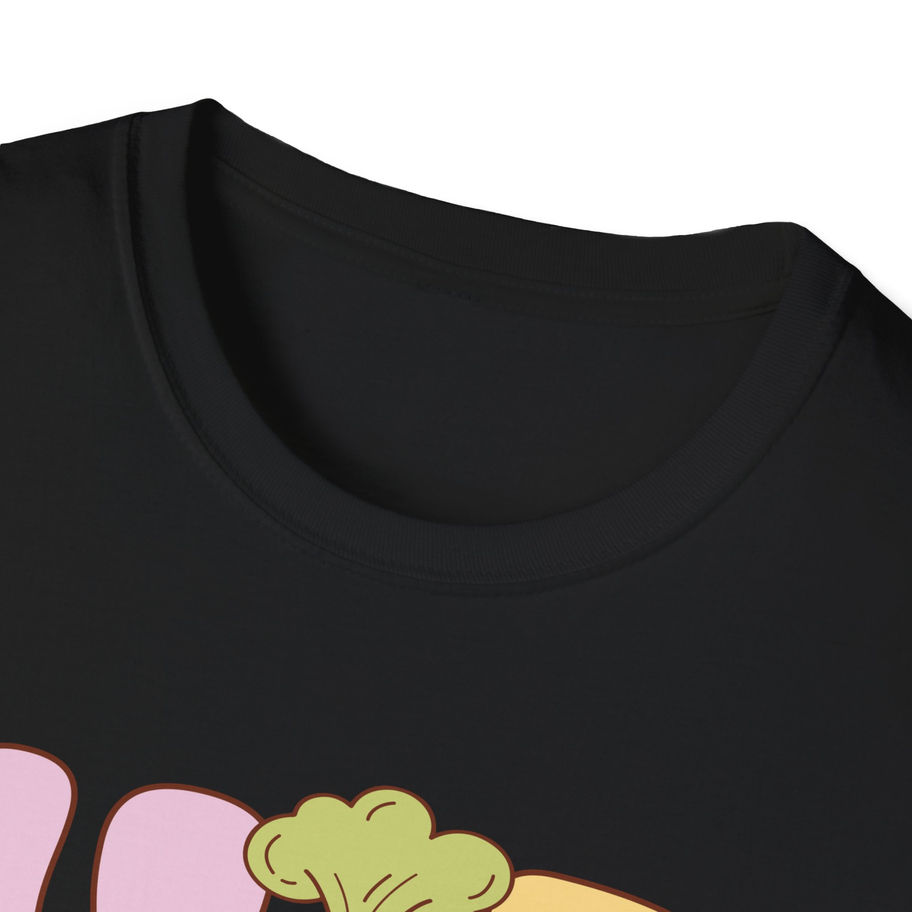 Get ready to hop into Easter fun with this adorable "Hop Hop" T-Shirt! Designed with bright pastel letters, bunny paws, carrots, and a sweet bunny face, this playful tee is perfect for Easter celebrations, spring outings, or simply spreading some holiday cheer.