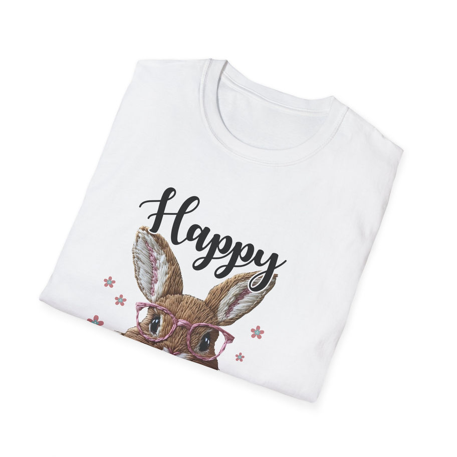 Hop into the Easter spirit with this stylish and quirky "Happy Easter" T-Shirt! Featuring a trendy bunny wearing chic glasses and a bow tie, this design adds a fun and fashionable twist to your holiday wardrobe. With playful floral details and colourful patchwork-style lettering, it's the perfect tee for Easter celebrations!