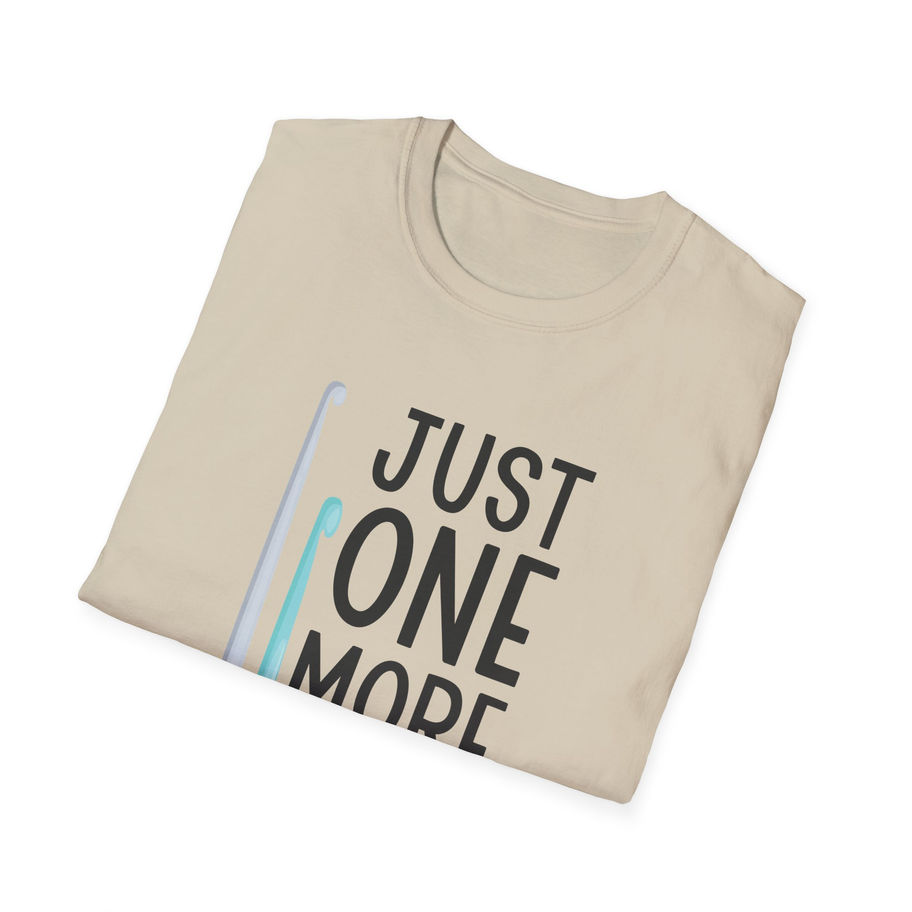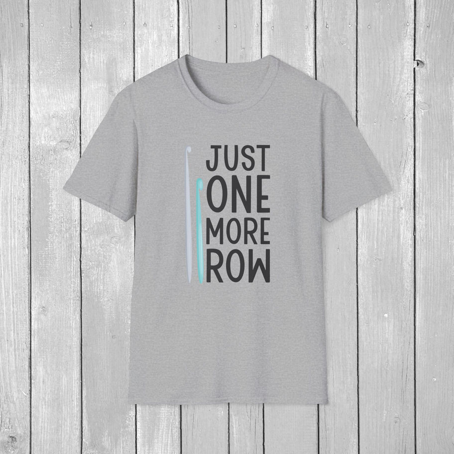 Celebrate your love for crochet with this charming and relatable T-shirt! Featuring the phrase "Just One More Row" alongside sleek crochet hook graphics, this tee perfectly captures the dedication (and obsession) of every crocheter. This T-shirt is ideal for crafting marathons, relaxing weekends, or casual outings. Whether you're working on your latest project or chatting with fellow yarn enthusiasts, this shirt will keep you comfortable and stylish.