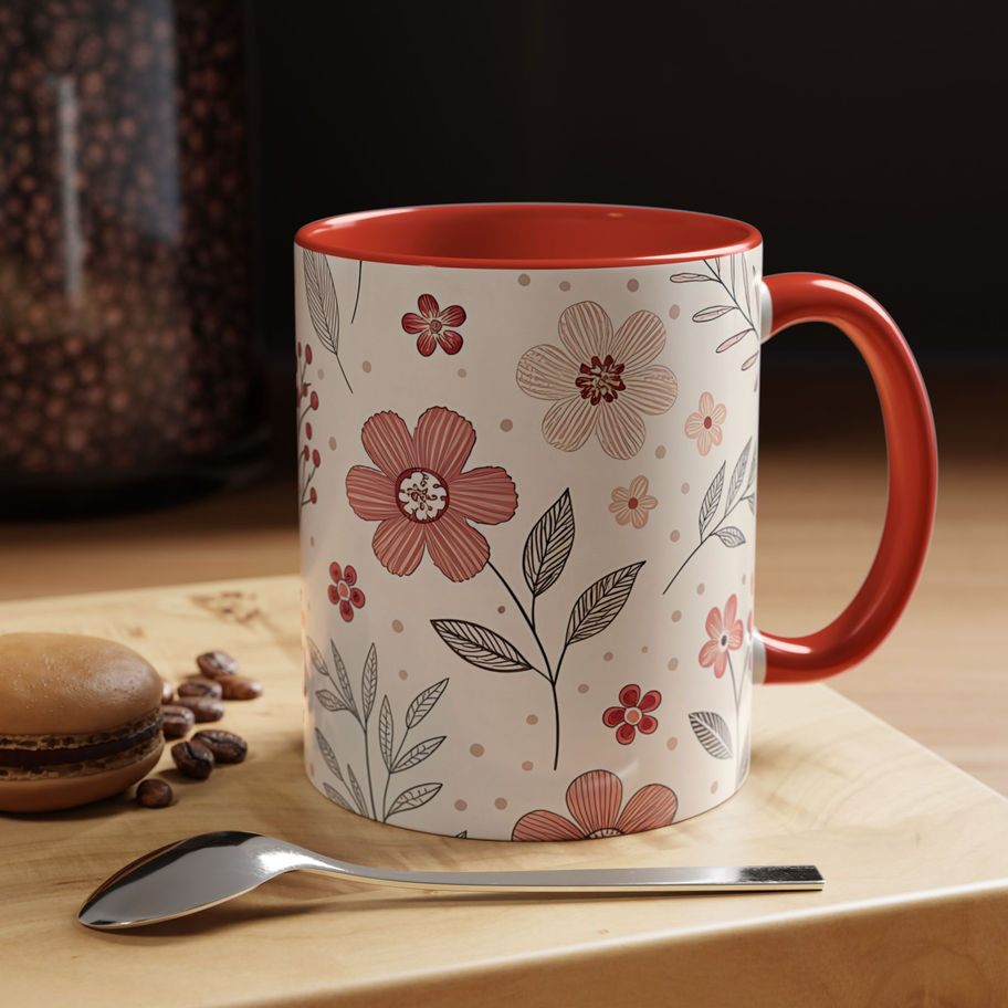 Clean, modern, and effortlessly stylish—this Scandi bloom mug blends delicate floral line art with soft red tones and warm neutrals.