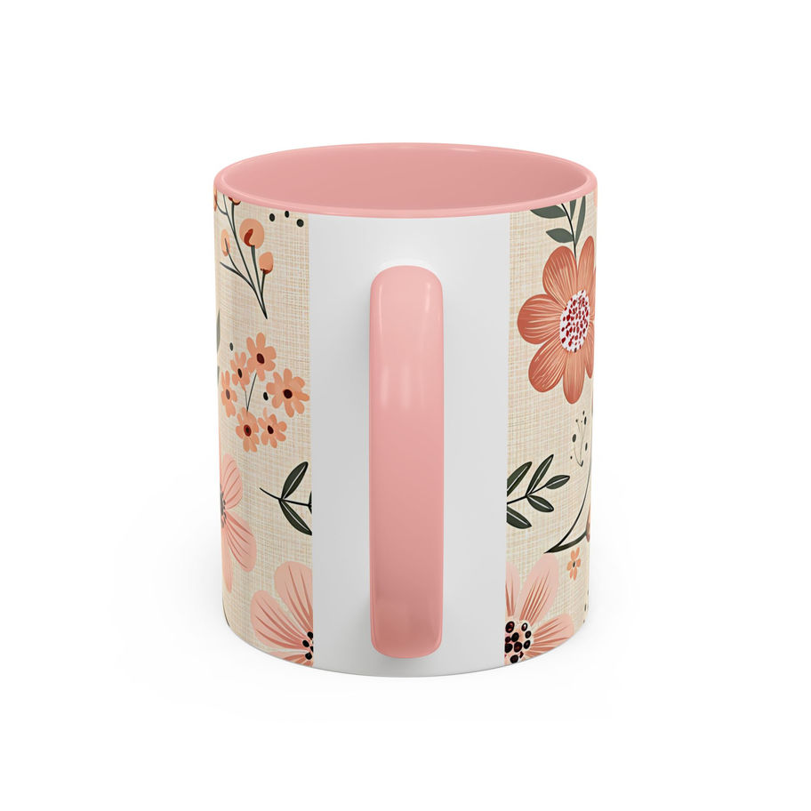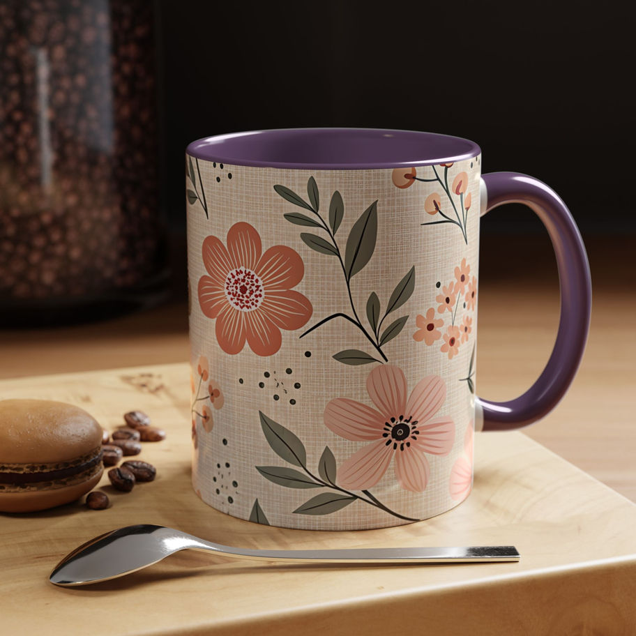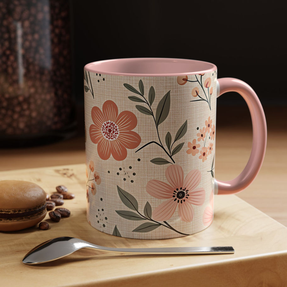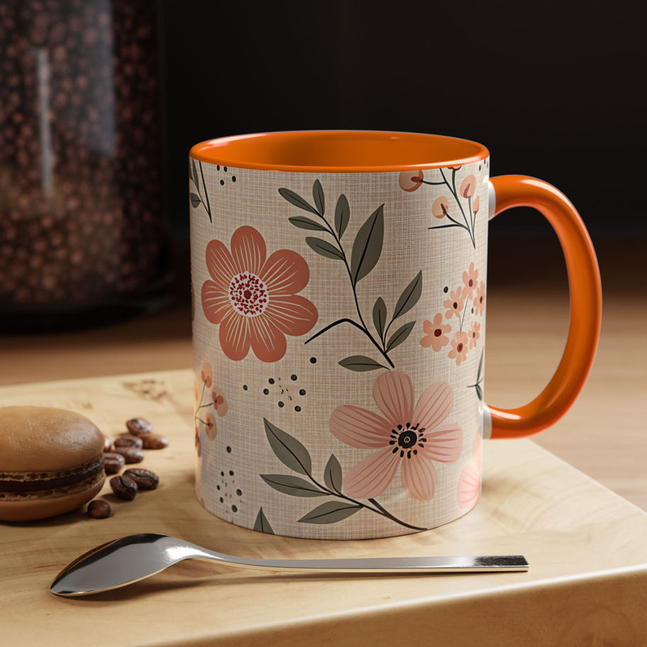 Warm Neutral Floral Mug (11oz) – Beige & Terracotta Botanical Coffee Cup
